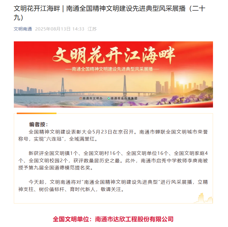 歡迎訪問南通市達欣工程股份有限公司官方網站!