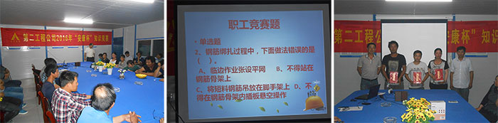 6月9日,普及安全生產(chǎn)知識及技能,組織所屬項目部開展“安康杯”知識競賽,參賽人員經(jīng)過筆試、激烈的搶答等環(huán)節(jié),最終板橋A地塊二期二標段項目榮獲團體一等獎、新港龍庭項目榮獲團體二等獎、善水灣項目榮獲團體三等獎,此次競賽既普及了安全知識,又增強了團隊的凝聚力。同時工程公司對施工現(xiàn)場進行拉網(wǎng)式安全檢查,對危險性較大的分部分項工程進行專項檢查,排除安全隱患,防止事故的發(fā)生。