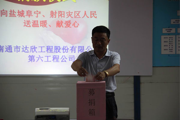 6月23日下午,江蘇省鹽城市阜寧縣、射陽縣部分地區(qū)突發(fā)超強龍卷風,給當地造成重大人員傷亡和財產損失。為幫助災區(qū)群眾渡過難關,體現中華民族“一方有難,八方支援”的傳統(tǒng)美德,7月1日,在黨的95周年生日到來之際,第六工程公司積極響應上級號召,動員全體干部職工尤其是黨員積極行動起來,向災區(qū)進行捐款。
