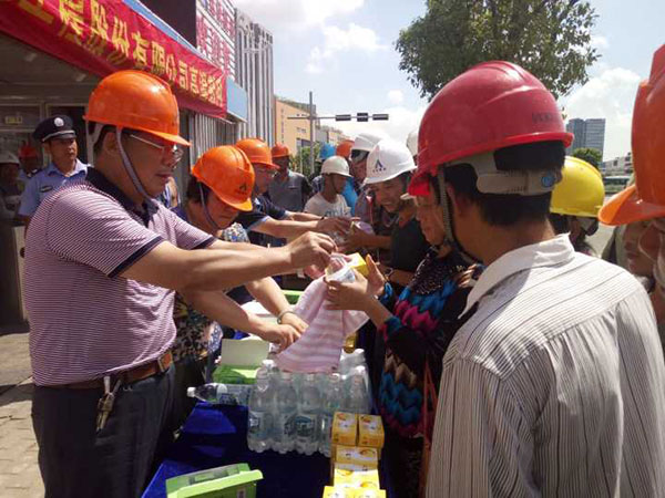 在慰問活動中,劉厚純書記每到一處都向堅(jiān)守崗位的一線員工表示親切慰問,與項(xiàng)目經(jīng)理進(jìn)行交談,詳細(xì)了解項(xiàng)目施工情況和工人的生活情況。他要求各項(xiàng)目部要切實(shí)關(guān)心一線作業(yè)人員的安全和健康,采取有效措施,合理調(diào)整工作時間,確保將防暑降溫工作落到實(shí)處,確保員工身體健康,確保生產(chǎn)安全。