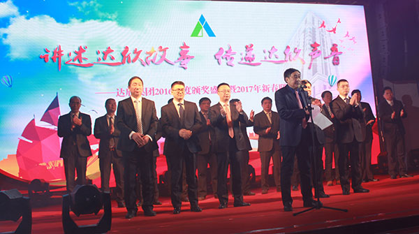 集團(tuán)高管們?cè)谂炫鹊摹斑_(dá)欣之歌”聲中激情登場(chǎng),公司董事長(zhǎng)馬和軍進(jìn)行了致辭答謝。他回顧了公司 一年來所取得的輝煌成績(jī),感謝社會(huì)各界及公司全體同志們的努力,并對(duì)公司的未來發(fā)展之路描繪了藍(lán)圖;接著,縣委書記陸衛(wèi)東發(fā)表重要講話, 他指出,建筑業(yè)是我縣的傳統(tǒng)產(chǎn)業(yè),也是一個(gè)富民強(qiáng)勢(shì)產(chǎn)業(yè),還是我縣財(cái)政收入的重要來源之一,作為縣內(nèi)的骨干企業(yè),達(dá)欣公司步入了公司歷史以來發(fā)展最快、榮譽(yù)最高、分配最多、貢獻(xiàn)最大的時(shí)期,他希望公司要加快發(fā)展,高起點(diǎn)定位,突出重點(diǎn),好中求快,實(shí)現(xiàn)達(dá)欣新飛躍。