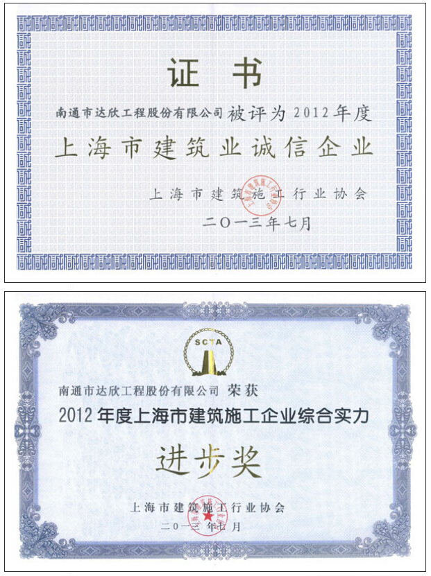 第一工程公司喜獲上海市建筑業(yè)誠信企業(yè)、上海市綜合實(shí)力進(jìn)步獎(jiǎng)