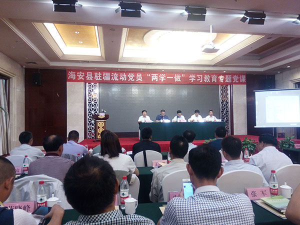 8月20日,海安縣駐疆流動黨員“兩學一做”學習教育專題黨課在烏魯木齊市舉行,集團在疆黨員和海安縣建筑企業(yè)在疆流動黨員、縣外流入我縣建筑企業(yè)在疆的流動黨員、新疆江蘇商會的部分黨員100多人一起參加了會議。