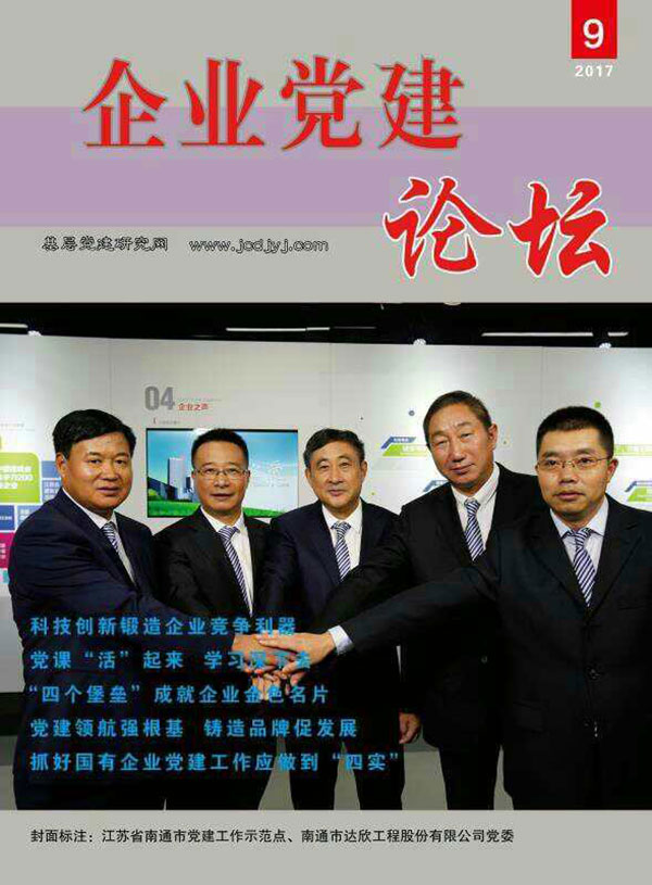 9月的《企業(yè)黨建》雜志,以封面人物的形式,刊登了由海安縣委組織部副部長(zhǎng)周小軍、組織科科長(zhǎng)吳蘭,撰寫推薦的江蘇省南通市黨建工作示范點(diǎn)——南通市達(dá)欣工程股份有限公司黨委的黨建成果。