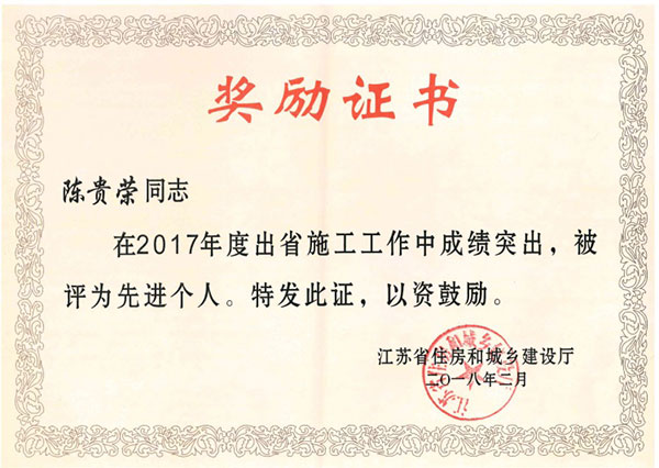 第七工程公司連續(xù)五年被評為“江蘇省出省建筑施工先進(jìn)集體”
