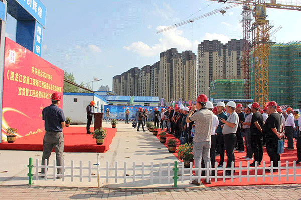 9月12日下午,齊齊哈爾市2018年《黑龍江省施工現(xiàn)場工程質(zhì)量管理標準化實施細則》宣貫暨工程質(zhì)量標準化工地觀摩會在第七工程公司承建的飛鶴?御景園項目勝利召開。齊市建設主管部門相關領導出席活動,來自齊市七區(qū)九縣的住建部門、質(zhì)量監(jiān)督部門、建設單位、監(jiān)理單位、施工單位的代表近400多人參加了此次觀摩。集團監(jiān)事會委員、第七工程公司總經(jīng)理陳貴榮陪同參加。