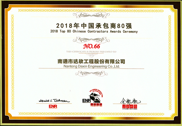 11月8日上午,2018年ENR/建筑時報中國承包商80強榜單在中國江西省南昌市隆重舉行頒獎典禮,來自建設(shè)主管部門、中國建筑業(yè)協(xié)會、中國勘察設(shè)計協(xié)會、中國對外承包工程商會等行業(yè)協(xié)會,美國ENR雜志高層以及國內(nèi)140家入圍“中國承包商80強和工程設(shè)計企業(yè)60強”榜單的企業(yè)高管匯聚一堂,共同見證新一屆中國建筑業(yè)最強陣容的誕生。南通市達欣工程股份有限公司首次成功入圍中國承包商80強第66名、最具效益承包商第10名。