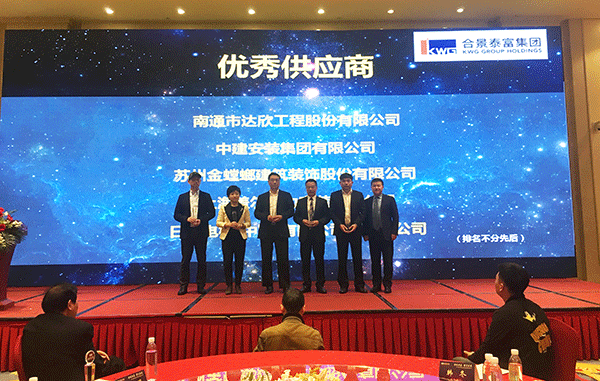 會上,公布了2018年度優(yōu)秀供應(yīng)商評選結(jié)果,集團榮獲合景泰富集團上海區(qū)域公司“優(yōu)秀供應(yīng)商”,集團黨委書記劉厚純上臺領(lǐng)獎并作為優(yōu)秀供應(yīng)商代表發(fā)言。