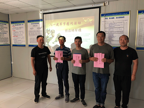 另訊,工程公司以項目部為單位積極開展轉(zhuǎn)業(yè)退伍軍人座談會,座談會上,首先由項目經(jīng)理宣讀了集團(tuán)公司“致轉(zhuǎn)業(yè)退伍軍人的慰問信”,向轉(zhuǎn)業(yè)退伍軍人致以節(jié)日的問候和祝福,并送上慰問金。轉(zhuǎn)業(yè)退伍軍人們給大家講述他們當(dāng)兵的歷程,重溫了那段激情燃燒的歲月,并感謝公司和項目部的關(guān)心,表示將繼續(xù)發(fā)揚軍人的優(yōu)良傳統(tǒng),退伍不褪色,一如既往的以軍人的標(biāo)準(zhǔn)立足崗位,勇于奉獻(xiàn)。