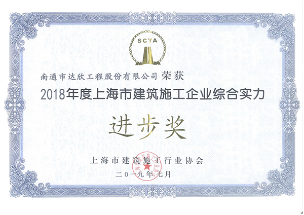 在近日公布的2018年度上海市建筑施工企業(yè)綜合排名評審結(jié)果中,達(dá)欣集團(tuán)第一工程公司榮獲“上海建筑施工企業(yè)綜合實力進(jìn)步獎”。