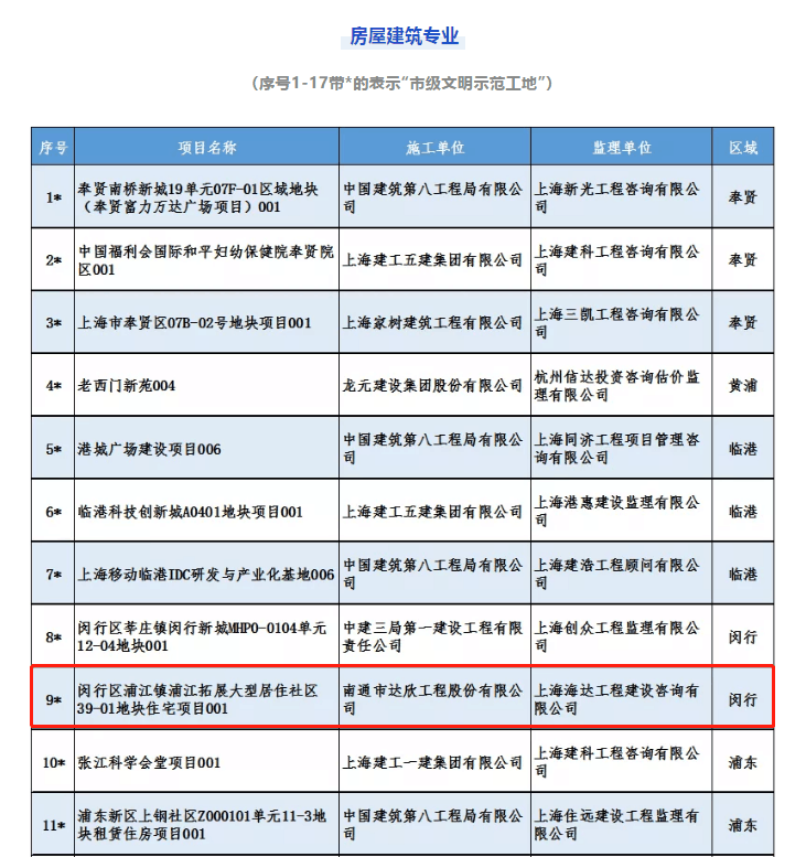 近日,上海住房城鄉(xiāng)建設(shè)管理委員會滬建質(zhì)安〔2021〕258號文件公布了《關(guān)于2020年度上海市文明工地的通知》。第一工程公司上海閔行區(qū)浦江鎮(zhèn)39-01地塊住宅項目被評為2020年度上海市文明示范工地。