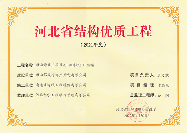 近日,從河北省住房和城鄉(xiāng)建設(shè)廳傳來(lái)喜訊,集團(tuán)邊各寨棚戶(hù)區(qū)改造項(xiàng)目、唐山謝家莊項(xiàng)目、邯鄲市雞澤縣多館合一等五項(xiàng)目榮獲河北省結(jié)構(gòu)優(yōu)質(zhì)工程。