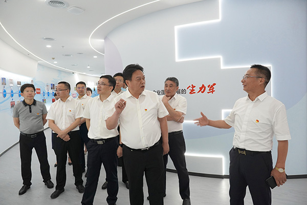 于立忠一行參觀了“征途如虹”企業(yè)印記,“初心如炬”黨建云庫,“教誨如風(fēng)”達(dá)欣講堂,“使命如山”先鋒服務(wù)站,“追夢如潮”職工書屋,“群團(tuán)如影”風(fēng)采展示等七個版塊和書記工作室。于立忠指出,達(dá)欣黨建主題館,全方位展現(xiàn)了企業(yè)黨建成果和發(fā)展成就,形式生動,內(nèi)涵豐富、詳實。于立忠強(qiáng)調(diào),抓好非公企業(yè)黨建始終是促進(jìn)非公經(jīng)濟(jì)發(fā)展健康發(fā)展的核心舉措,“高質(zhì)量黨建引領(lǐng)企業(yè)高質(zhì)量發(fā)展”在達(dá)欣得到生動的實踐。于立忠希望,達(dá)欣集團(tuán)要不斷完善優(yōu)化主題館內(nèi)容,切實將黨建主題館打造為黨員、團(tuán)員青年、職工群眾學(xué)習(xí)黨的創(chuàng)新理論、傳承勞模工匠精神的新平臺,并作為記錄達(dá)欣黨建工作與企業(yè)同步發(fā)展的重要載體。要繼續(xù)堅持“圍繞發(fā)展抓黨建,抓好黨建促發(fā)展”的理念,不斷豐富黨建品牌內(nèi)涵,為海安非公企業(yè)黨建樹立榜樣典型,為海安發(fā)展作出新的更大貢獻(xiàn)。