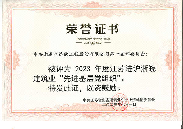 近日,從江蘇省住房和城鄉(xiāng)建設廳駐上海辦事處傳來喜訊,集團第一黨支部委員會被評為“2023年度江蘇進滬浙皖建筑業(yè)先進基層黨組織”榮譽稱號,倪志榮同志獲“全省住房和城鄉(xiāng)建設行業(yè)優(yōu)秀共產(chǎn)黨員”、馬寧偉同志獲“江蘇進滬浙皖建筑業(yè)優(yōu)秀共產(chǎn)黨員”、陳元國同志獲“江蘇進滬浙皖建筑業(yè)優(yōu)秀黨務工作者”。