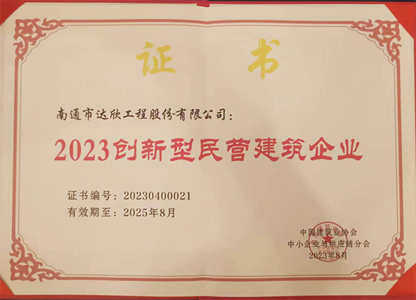 達(dá)欣集團(tuán)榮獲“2023創(chuàng)新型民營(yíng)建筑企業(yè)”