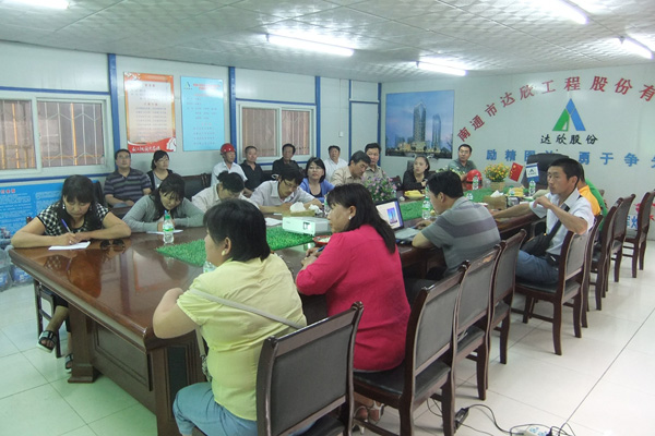 6月28日上午,來自蒙古國工業(yè)建筑學(xué)院建筑系的領(lǐng)導(dǎo)和教師一行20人在唐山市住建局、質(zhì)監(jiān)站領(lǐng)導(dǎo)的陪同下,對我司承建的鳳城國際廣場項目部進(jìn)行了實地參觀學(xué)習(xí)。項目經(jīng)理張維琪通過幻燈演示將工程概況、質(zhì)量控制、安全文明施工等向客人作了一一的介紹,隨行翻譯人員同步進(jìn)行了翻譯。