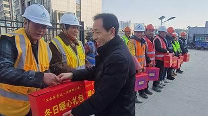1月13日,南通市總工會黨組成員、經(jīng)審會主任周正秋,南通市總工會權(quán)益保障部部長趙周恒一行,來到達欣集團南通R23005地塊項目建設(shè)現(xiàn)場,開展“工會在身邊 真情暖江海”2025年春節(jié)送溫暖活動,為奮戰(zhàn)在一線的工作人員送上冬日暖心禮包和新春的祝福與慰問。
