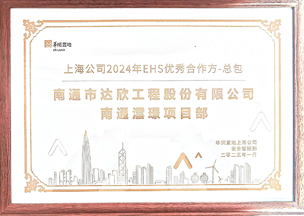 公司自與華潤置地合作以來,憑借專業(yè)的能力、優(yōu)質(zhì)的服務(wù)和高效的協(xié)作,在眾多合作方中脫穎而出,榮獲華潤置地上海公司“2024年EHS優(yōu)秀合作方-總包”稱號。
