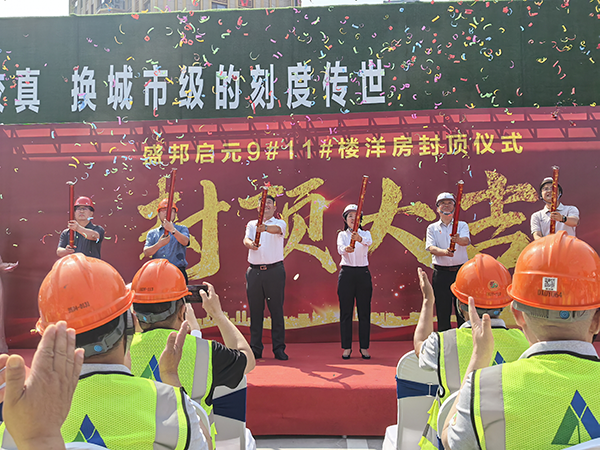 6月18日,第四工程公司承建的高鐵片區(qū)商務(wù)核心區(qū)58號地(簡稱盛邦啟元)項目9號、11號洋房封頂儀式隆重舉行。建設(shè)單位、監(jiān)理單位等主要領(lǐng)導(dǎo)齊聚現(xiàn)場,共同見證這一重要時刻。