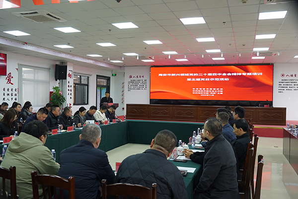 11月27日上午,海安市新興領(lǐng)域黨的二十屆四中全會(huì)精神專題培訓(xùn)暨主題黨日示范活動(dòng)在達(dá)欣集團(tuán)舉行。