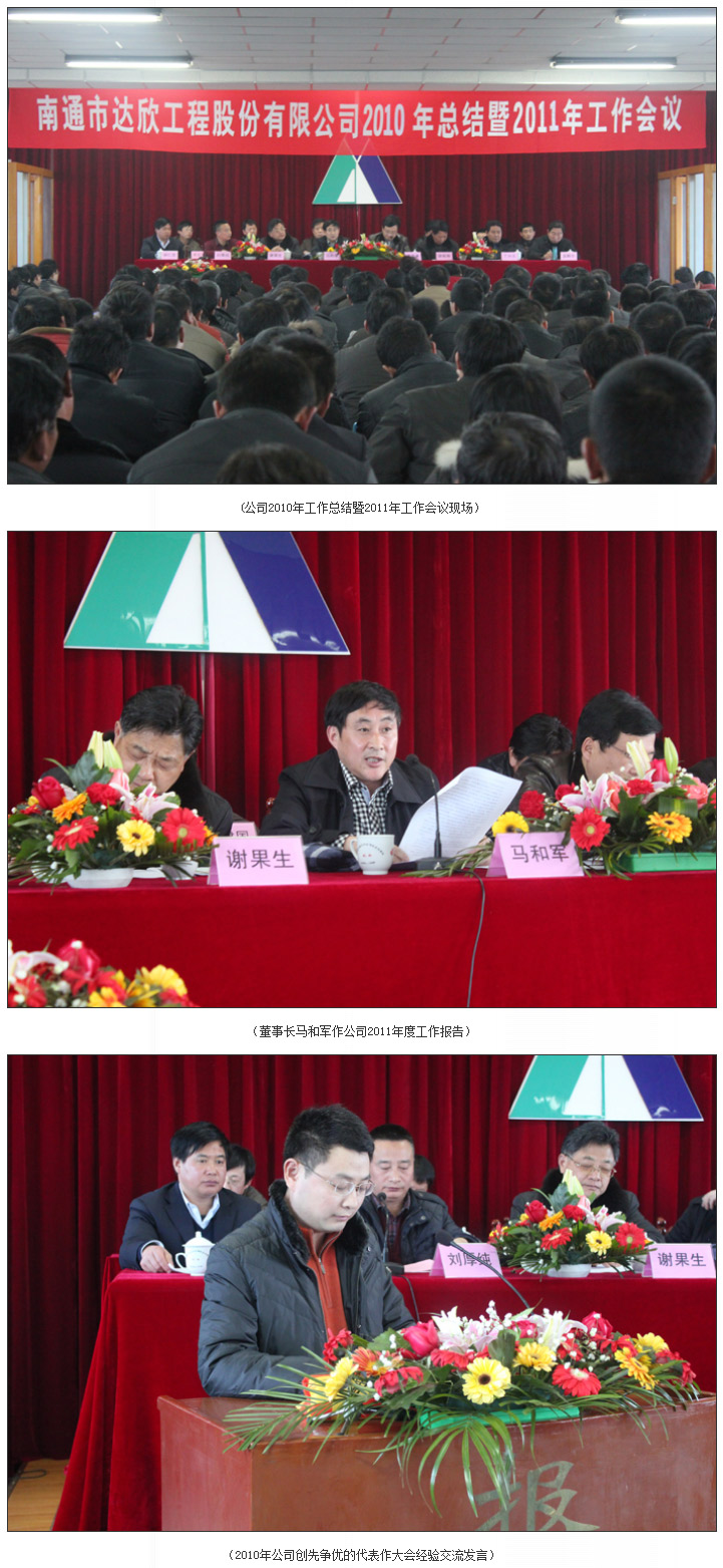 彩旗飄展,鞭炮齊鳴,南通市達(dá)欣工程股份有限公司2010年總結(jié)暨2011年工作會(huì)議于2月8日下午1:30分隆重開(kāi)幕。