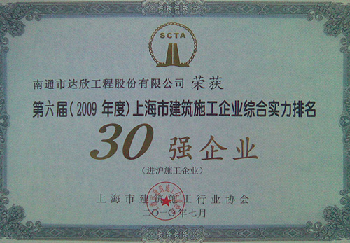 達(dá)欣股份首次挺進(jìn)進(jìn)滬施工企業(yè)前30強(qiáng)(進(jìn)滬施工的江蘇企業(yè)僅有八家),這標(biāo)志著公司跨入了進(jìn)滬強(qiáng)企的第一方陣,標(biāo)志著公司進(jìn)滬施工進(jìn)入了新階段!同時(shí)公司還再次榮獲了“上海市建筑業(yè)誠(chéng)信企業(yè)”稱號(hào)。上海市的主流媒體“解放日?qǐng)?bào)”、行業(yè)報(bào)刊“建筑時(shí)報(bào)”均予以報(bào)導(dǎo)。
