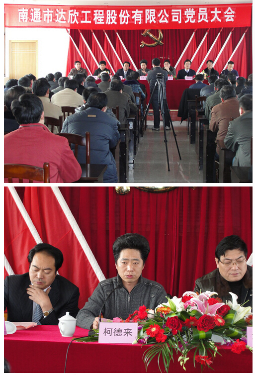 2月20日下午,公司全體黨員聚集在黨員活動室召開南通市達欣工程股份有限公司黨員大會。縣委常委、常務副縣長柯德來、縣人大副主任、組織部副部長章曙東、組織部副部長陳興俊、組織科科長成剛、吉清海、鎮(zhèn)黨委書記盧忠平、鎮(zhèn)長錢亞洲及鎮(zhèn)黨委等領(lǐng)導在百忙之中參加了我公司的黨員大會。這次黨員大會共選舉產(chǎn)生了七位黨委委員:丁興元、馬和軍、劉厚純、陳春紅、徐仁忠、溫鶴華、謝果生,選舉產(chǎn)生了三位紀委委員:王建國、楊靜、徐仁忠。劉厚純?nèi)喂军h委書記、馬和軍任公司黨委副書記、徐仁忠任公司紀委書記。