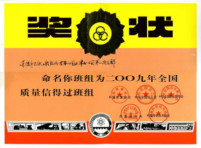 日前,在??谡匍_的全國(guó)第三十一次質(zhì)量管理小組代表會(huì)議上,我公司天津君臨大廈項(xiàng)目部獲得“全國(guó)質(zhì)量信得過(guò)班組”榮譽(yù)稱號(hào)。