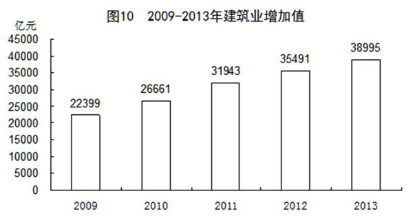 2013年全國建筑業(yè)增加值38995億元,比上年增長9.5%。全國具有資質(zhì)等級的總承包和專業(yè)承包建筑業(yè)企業(yè)實(shí)現(xiàn)利潤5575億元,增長16.7%,其中國有及國有控股企業(yè)1363億元,增長20.1%。