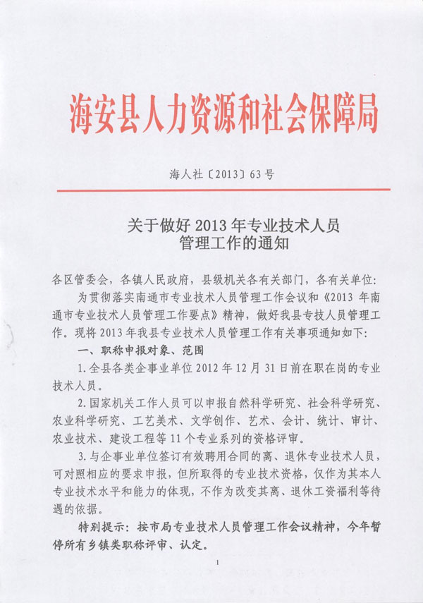 關(guān)于做好2013年專業(yè)技術(shù)人員管理工作的通知