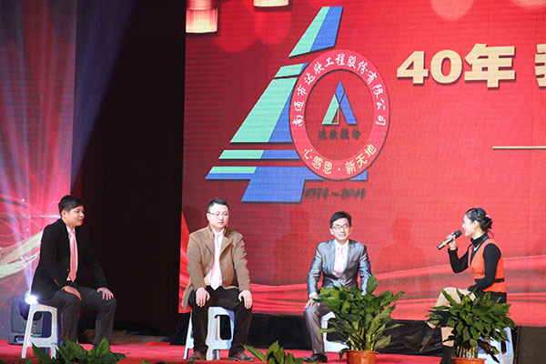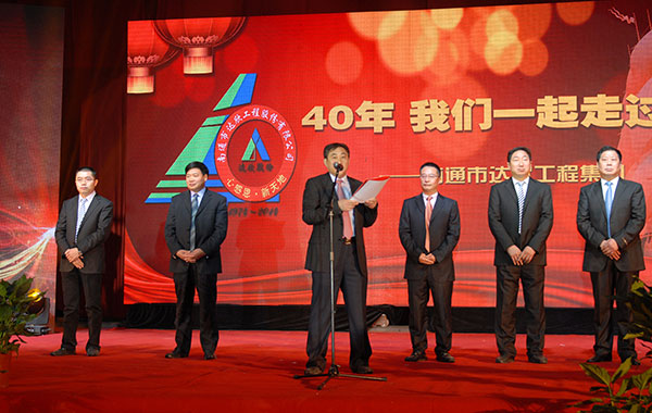 公司董事長(zhǎng)馬和軍進(jìn)行了致辭答謝。他說(shuō)在這樣一個(gè)特殊的時(shí)刻和一個(gè)特殊的地點(diǎn),我們正做著一件具有特別意義的事情。我們一起回顧達(dá)欣的光榮歷史,一起回味達(dá)欣40年來(lái)經(jīng)歷的風(fēng)風(fēng)雨雨,一起品嘗我們用勤勞和智慧的雙手?jǐn)€獲的豐收和喜悅。40年來(lái),我們始終堅(jiān)持改革,并最終受益于改革;40年來(lái),我們傳承并不斷發(fā)揚(yáng)光大著一種精神,這種精神的核心就是“艱苦奮斗,以身作則”、“團(tuán)結(jié)拼搏,顧全大局”、“凝心聚力,勇于爭(zhēng)先”;40年來(lái),在達(dá)欣這個(gè)大家庭中始終洋溢著一種濃濃的情誼。站在達(dá)欣40年這個(gè)歷史新起點(diǎn)上,相信達(dá)欣的光輝旗幟,一定會(huì)更好地迎風(fēng)展揚(yáng)、高高展揚(yáng)、百年展揚(yáng);在熱烈的掌聲中,縣委書(shū)記陸衛(wèi)東發(fā)表重要講話,他指出,今天我們共同見(jiàn)證和分享達(dá)欣集團(tuán)四十年發(fā)展的成功和喜悅,作為縣內(nèi)的標(biāo)桿建筑企業(yè),達(dá)欣步入了公司歷史以來(lái)發(fā)展最快、榮譽(yù)最高、分配最多、貢獻(xiàn)最大的時(shí)期,他希望公司要進(jìn)一步深化改革,加快發(fā)展,高起點(diǎn)定位,突出重點(diǎn),好中求快,實(shí)現(xiàn)達(dá)欣集團(tuán)的新飛躍。
