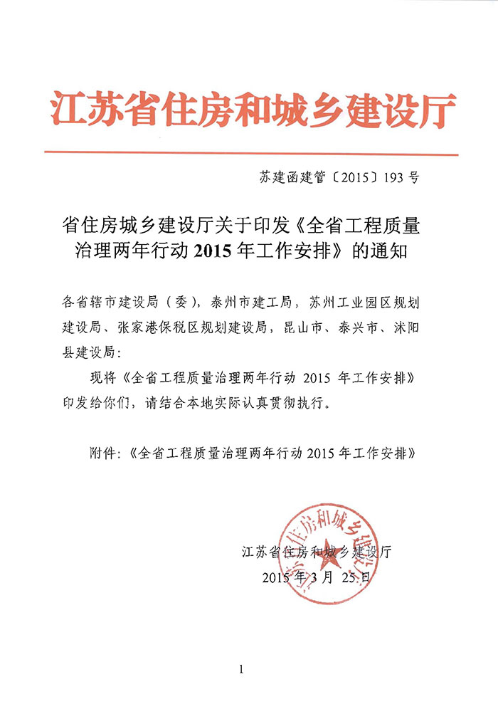 省住房城鄉(xiāng)建設(shè)廳關(guān)于印發(fā)《全省工程質(zhì)量治理兩年行動2015年工作安排》的通知