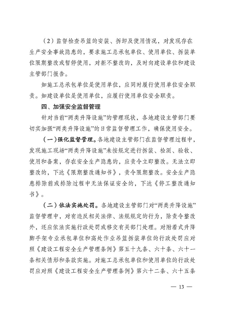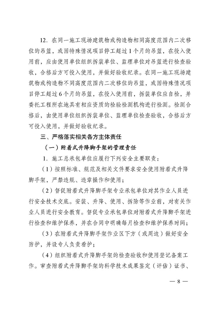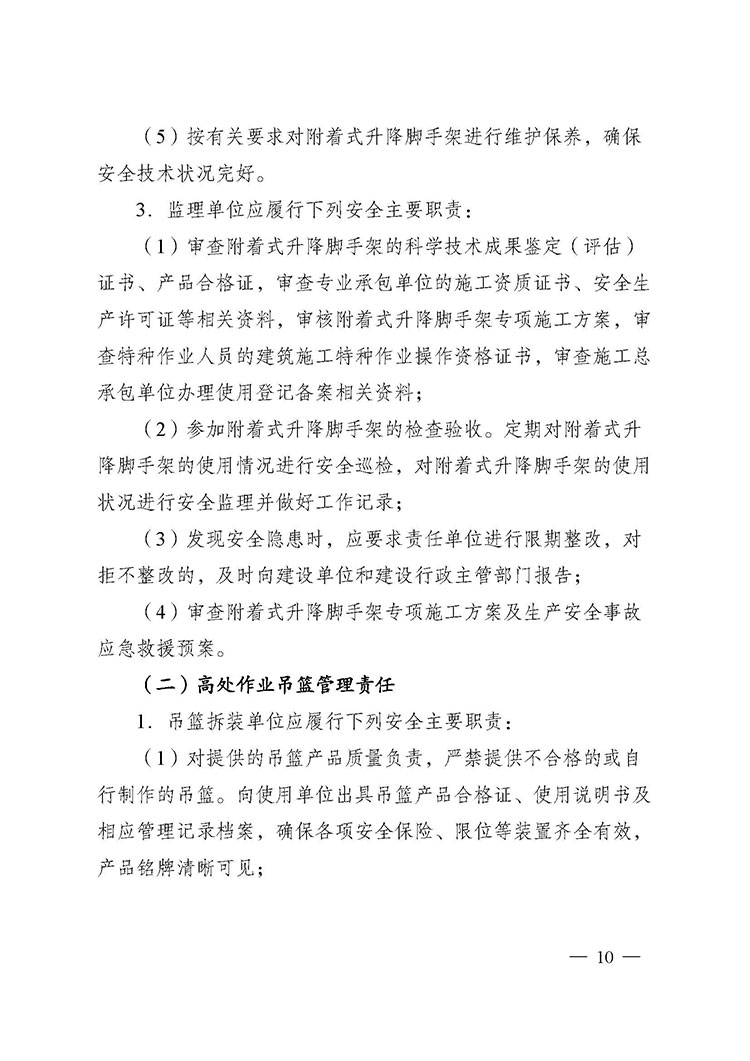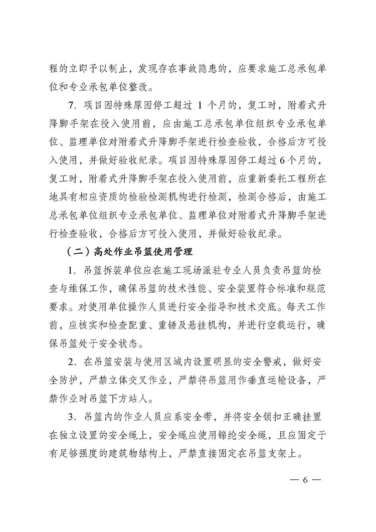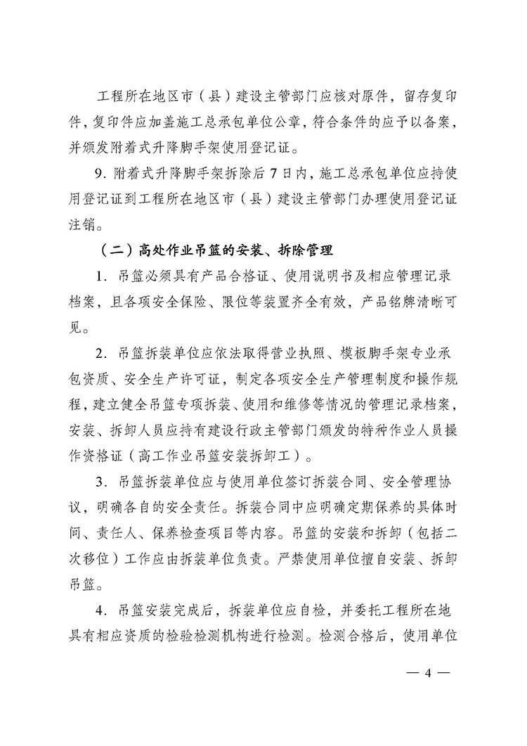 關(guān)于進一步加強附著式升降腳手架和高處作業(yè)吊籃安全管理的通知