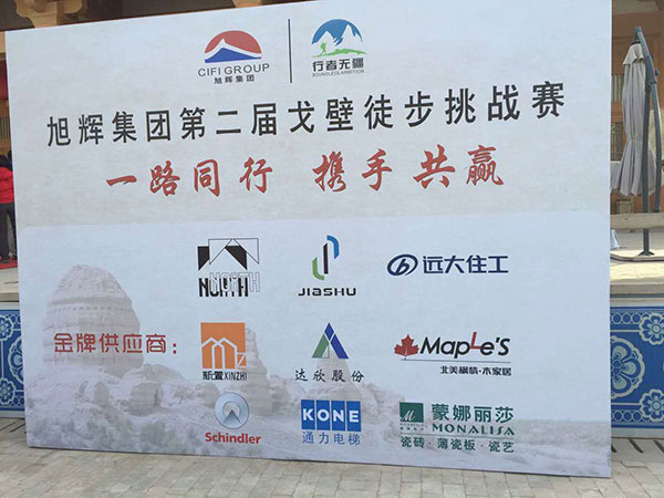金秋十月,在舉國同慶的日子里,9月30日至10月4日旭輝集團組織了第二屆戈壁徒步挑戰(zhàn)賽活動,由16支代表隊160余人組成,第八工程公司總經(jīng)理李向東同志作為金牌供應商代表有幸參加了此次活動。